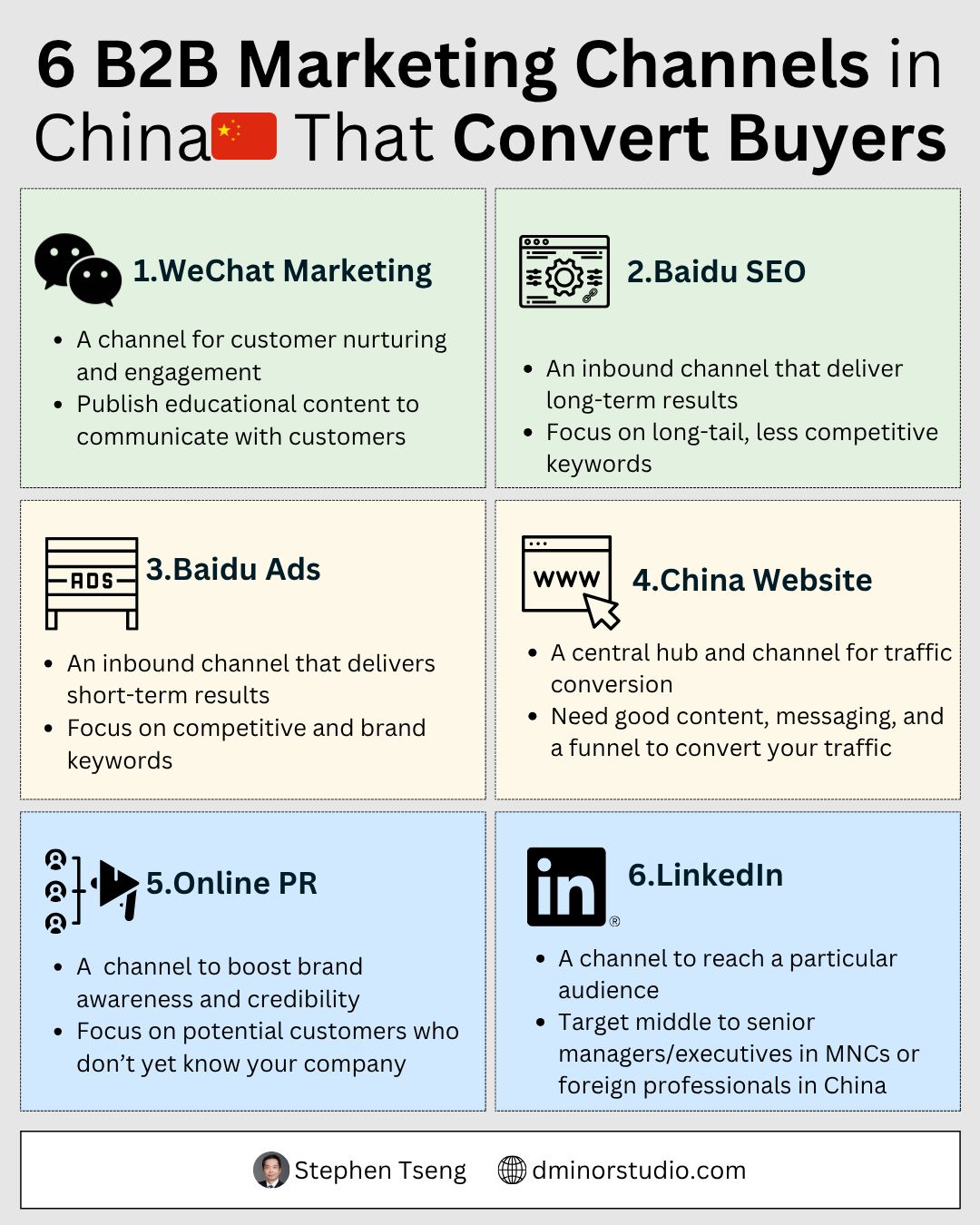 LinkedIn: Target middle-to-senior managers in MNCs or foreign professionals who work in China.